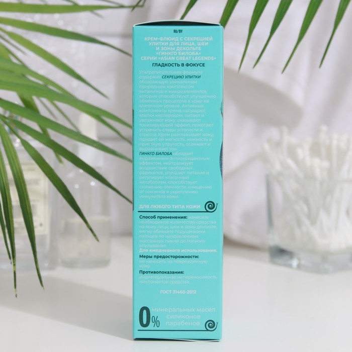 Крем-флюид для лица, шеи и зоны декольте VILSEN ASIAN GREAT LEGENDS, фильтрат секрета улитки и гинкго билоба, 95 мл