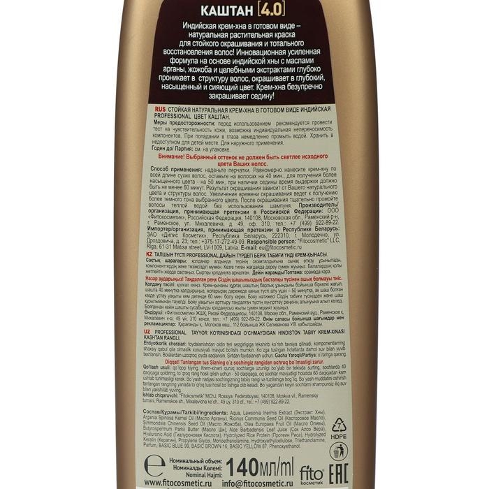 Крем-хна индийская в готовом виде Fitoкосметик Professional, тон каштан, 140 мл