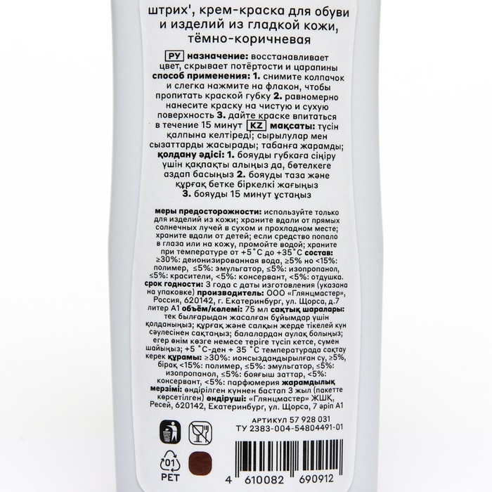 Назначение: восстанавливает цвет, скрывает потёртости и царапины, подходит для кроссовок и для подошв.