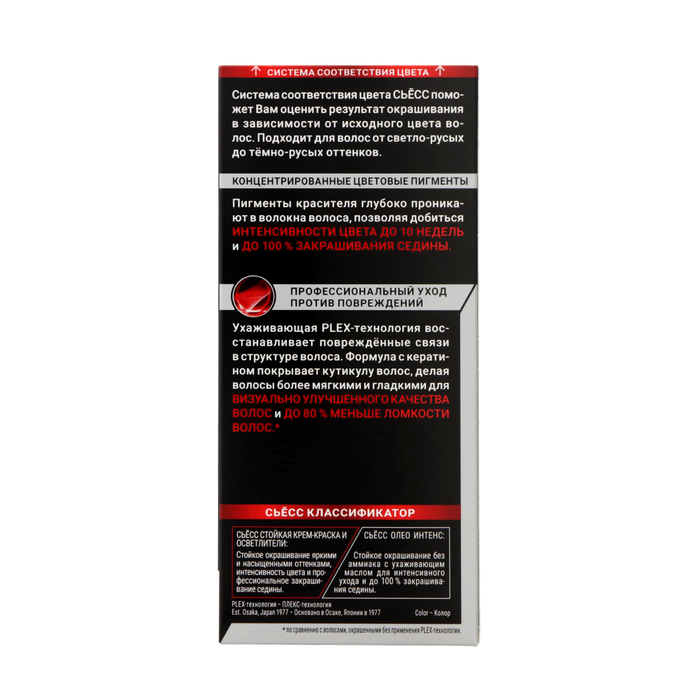 Стойкая крем-краска для волос СЬĔСС содержит цветовые пигменты и ухаживающую PLEX-технологию для насыщенного цвета и профессионального восстановления структуры волос. Красивые и ухоженные волосы как после салона.
