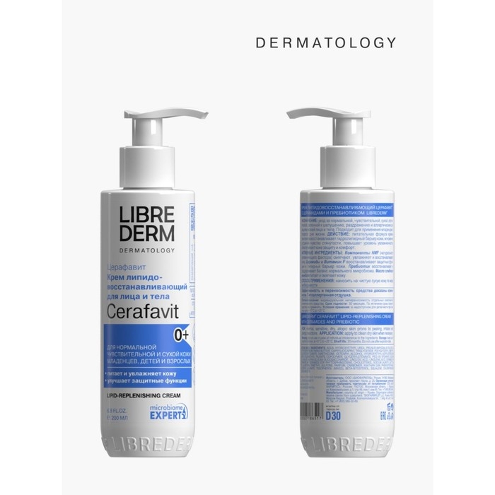 Крем липидовосстанавливающий ЦЕРАФАВИТ/CERAFAVIT нормализует функции сухой, чувствительной и атопической кожи взрослых и детей с первых дней жизни 0+. Уникальная формула из чистого Витамина F, церамидов и пребиотика способствует быстрому восстановлению гидролипидного барьера кожи и синтезу собственных церамидов. Эффективен при раздражениях, шелушении, покраснении и зуде. Быстро снимает ощущение сухости и стянутости, повышает иммунитет кожи. Удерживает влагу в коже и увеличивает её эластичность. Нежный крем быстро впитывается, питает и увлажняет кожу. Не содержит парабенов и красителей. СПОСОБ ПРИМЕНЕНИЯ: наносить на чистую сухую кожу после душа.