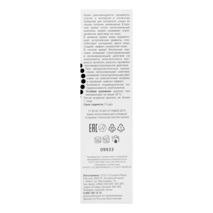 Липосомальная формула крема содержит натуральный фактор защиты кожи от фотостарения SPF 50, обладает филлер-действием, устраняет эстетические недостатки.