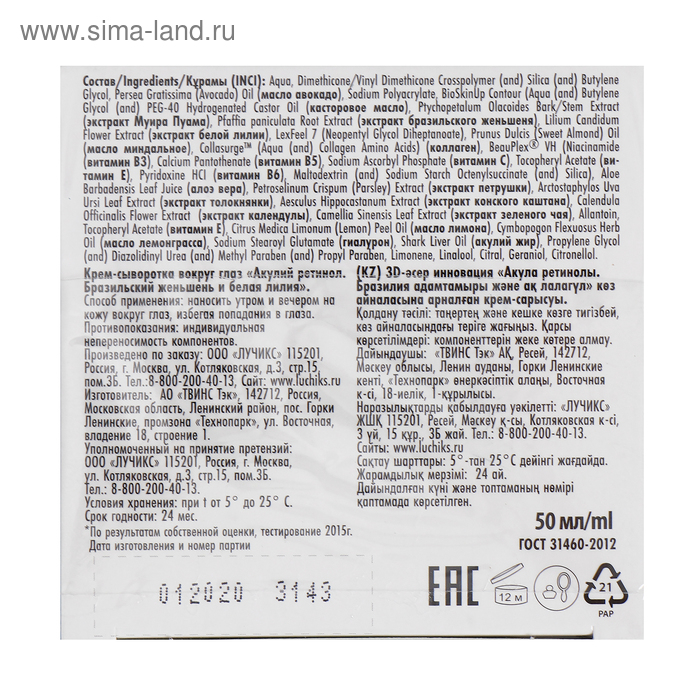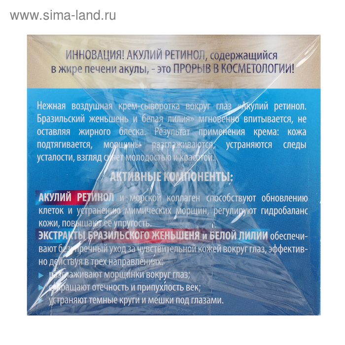 Крем-сыворотка вокруг глаз «Акулья сила», акулий ретинол, бразильский женьшень и белая лилия, 50 мл