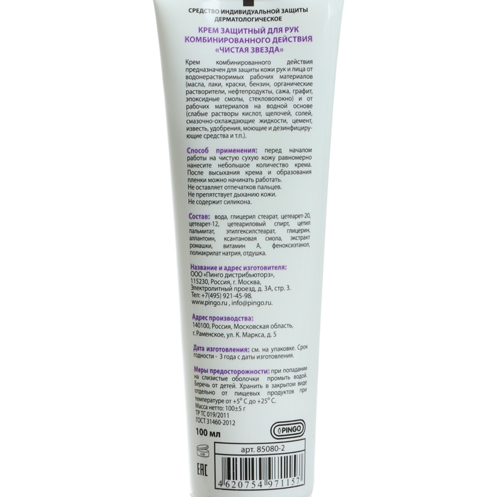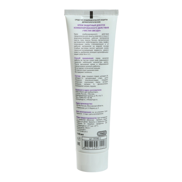 Крем защитный для рук комбинированного действия Pingo Чистая звезда, туба 100 мл