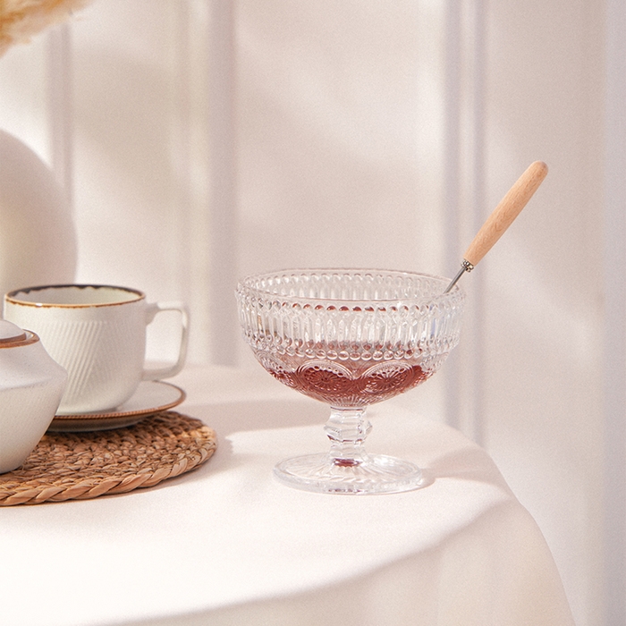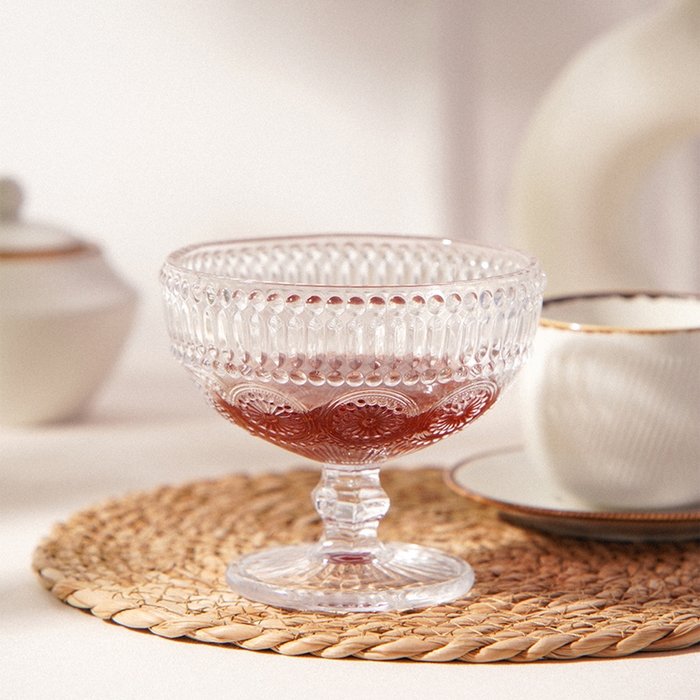 Креманка обладает не только элегантным внешним видом, но и высокой функциональностью. Рельефная текстура придает изделию дополнительную привлекательность и удобство в использовании. Благодаря качественному силикатному стеклу, она устойчива к царапинам и механическим повреждениям, что обеспечивает долгий срок службы и сохранение первозданного вида.