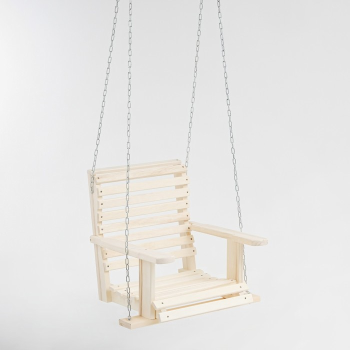 Кресло большое подвесное на цепи, деревянное, сиденье 50×65см