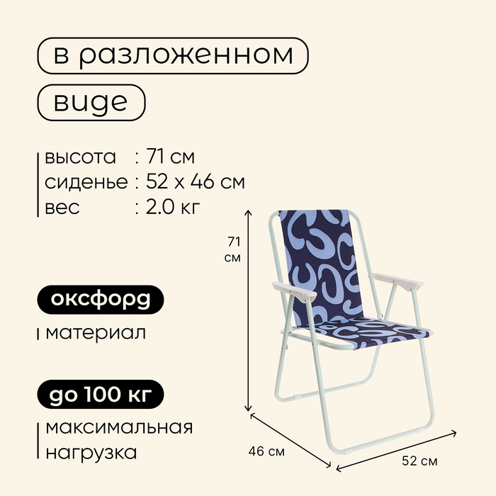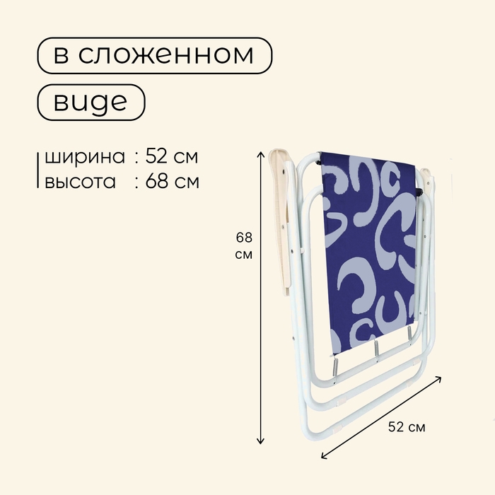 Кресло предназначено для дачного, пляжного отдыха и кемпинга на природе.