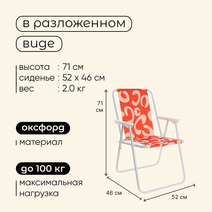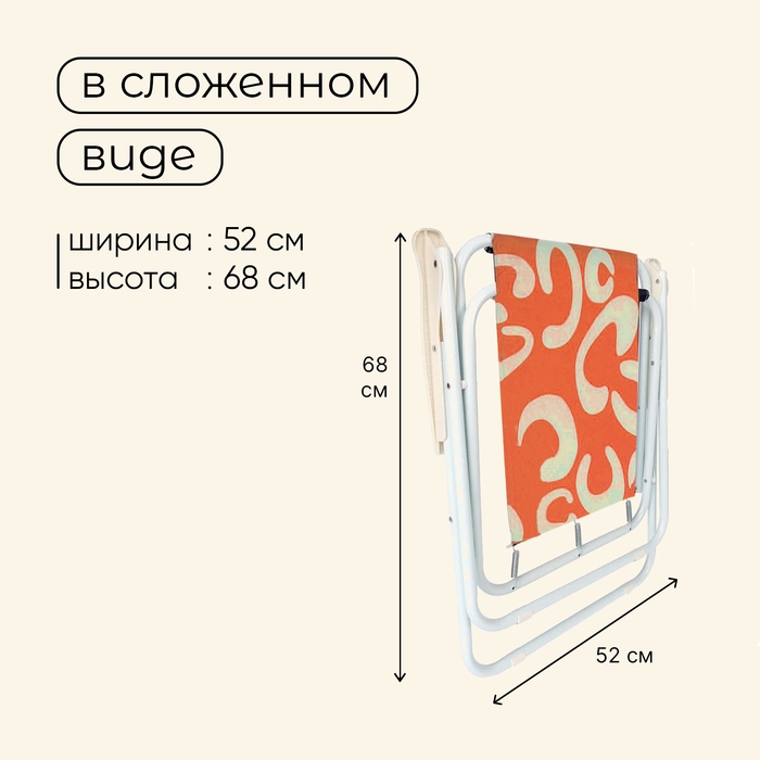 Кресло предназначено для дачного, пляжного отдыха и кемпинга на природе.
