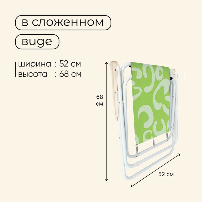 Кресло предназначено для дачного, пляжного отдыха и кемпинга на природе.