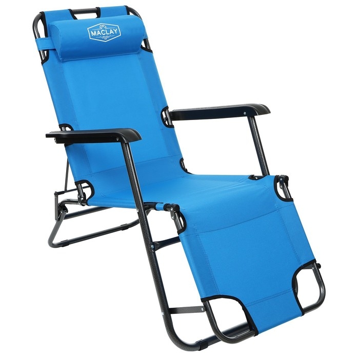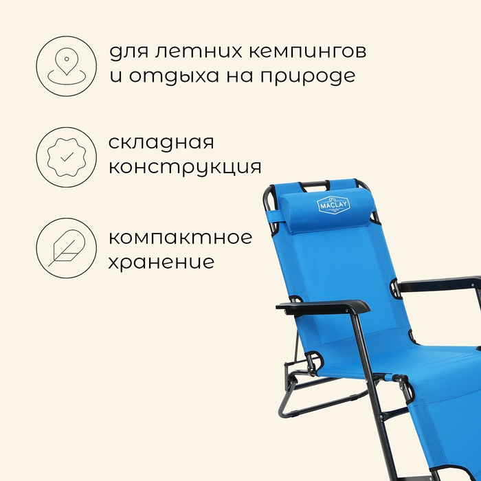 Кресло-шезлонг туристическое maclay, с подголовником, 153 х 60 х 79 см, цвет голубой