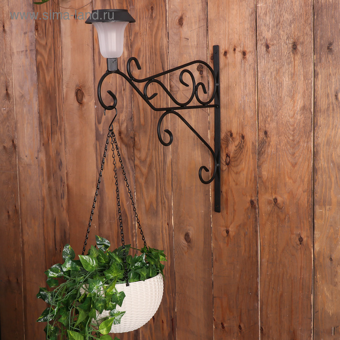Кронштейн для кашпо, кованый, с фонарём, 50 см, металл, чёрный, «Узор»