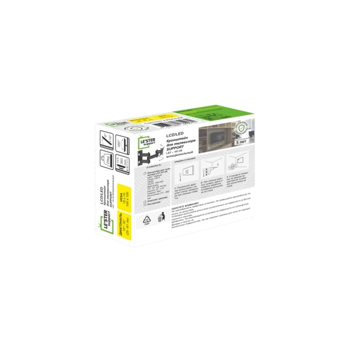 Кронштейн LE'STER LST-101.05, для ТВ,наклонно-поворотный,10-32",117-383 мм от стены,черный