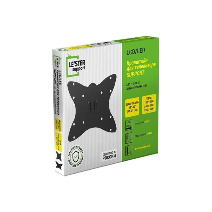 Кронштейн LE'STER LST-201.01, для ТВ, фиксированный, 10-55", 21 мм от стены, черный