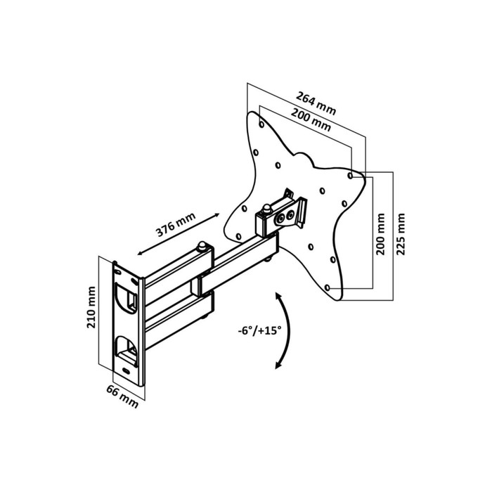 Кронштейн Luazon KrON-52, для ТВ, наклонно-поворотный, 10-27", до 20 кг, черный