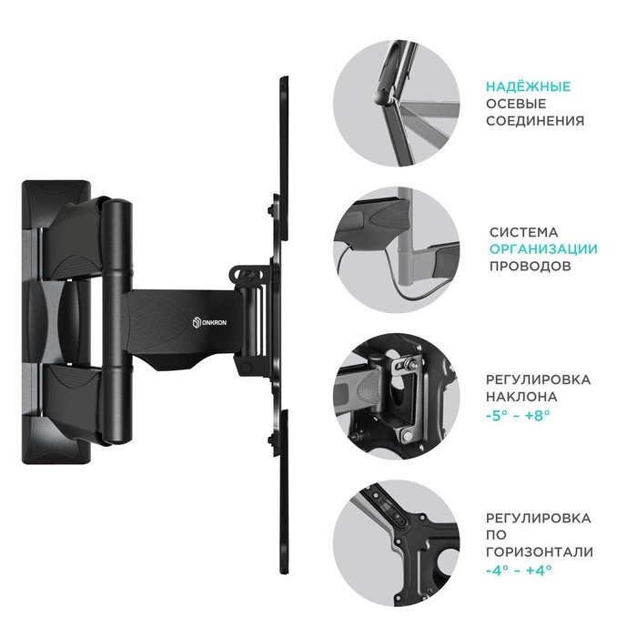 Кронштейн ONKRON M4, для ТВ, наклонно-поворотный, 32"-65", 55-500 мм от стены, черный
