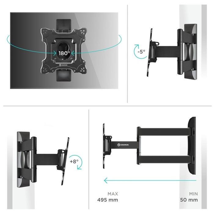 Кронштейн ONKRON M4S, для ТВ, наклонно-поворотный, 17"-43", 55 - 500 мм от стены, черный
