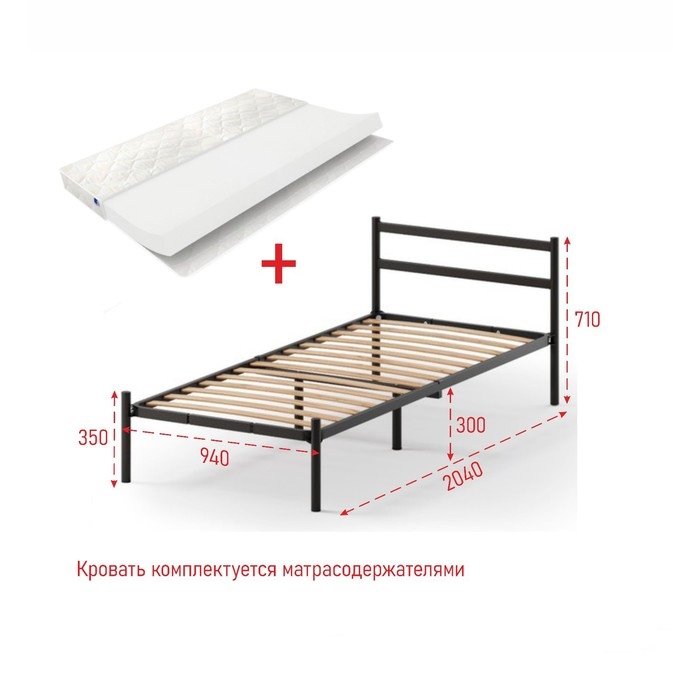 Кровать c матрасом «Мета», разборная, металлическая, 900 × 2000 мм