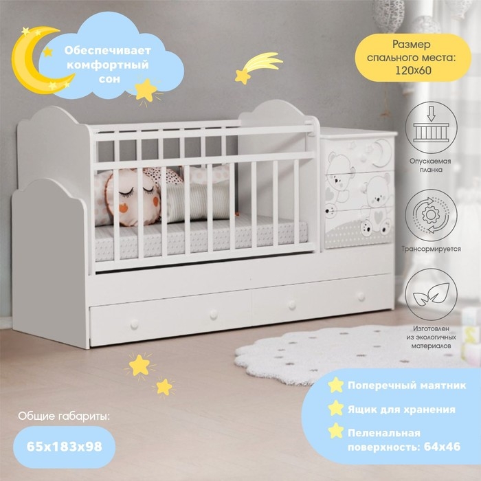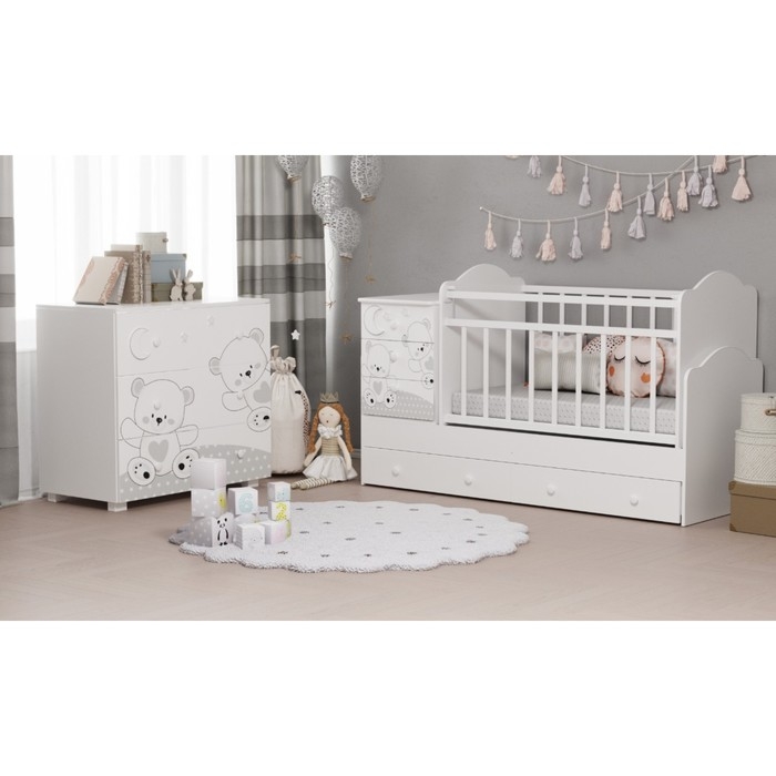 Детская кровать-трансформер Фея 1100 «Медвежонок», цвет белый