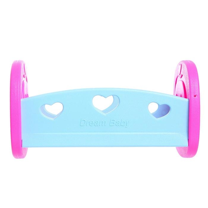 Кроватка для куклы дополнит интерьер детской комнаты. Каркас прочный, выполнен из пластика. Между бортиками кроватки ставятся пластмассовые перегородки, благодаря которым кукла не будет проваливаться. Девочка с удовольствием уложит пупса на кроватку и накроет одеялом. Постельное бельё входит в комплект.