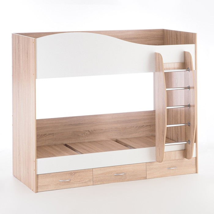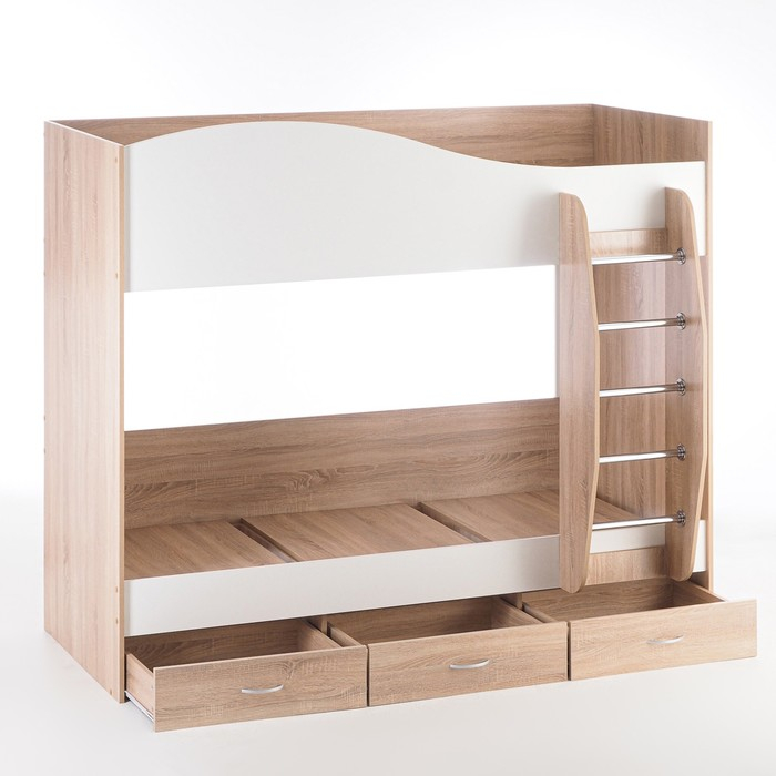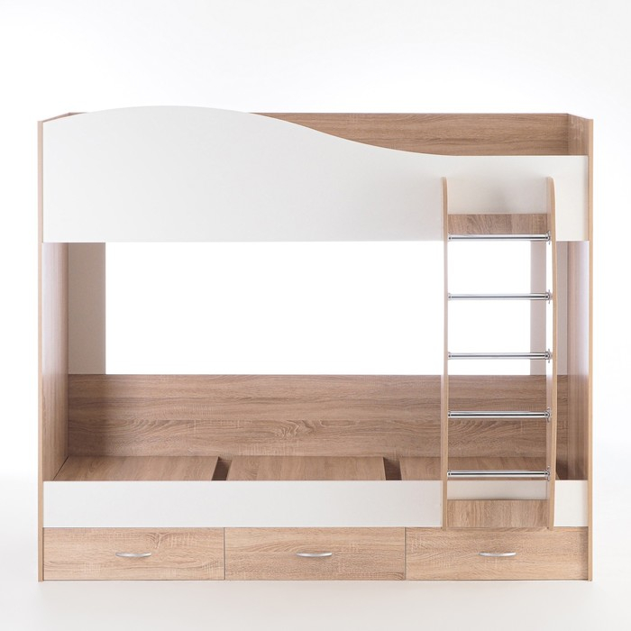 Кровать двухъярусная с ящиками, 800х2000, Белый/Дуб сонома