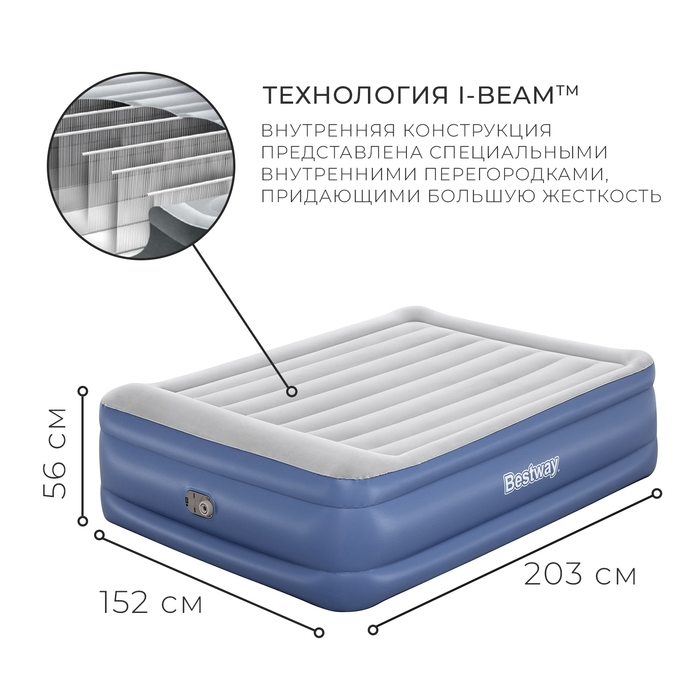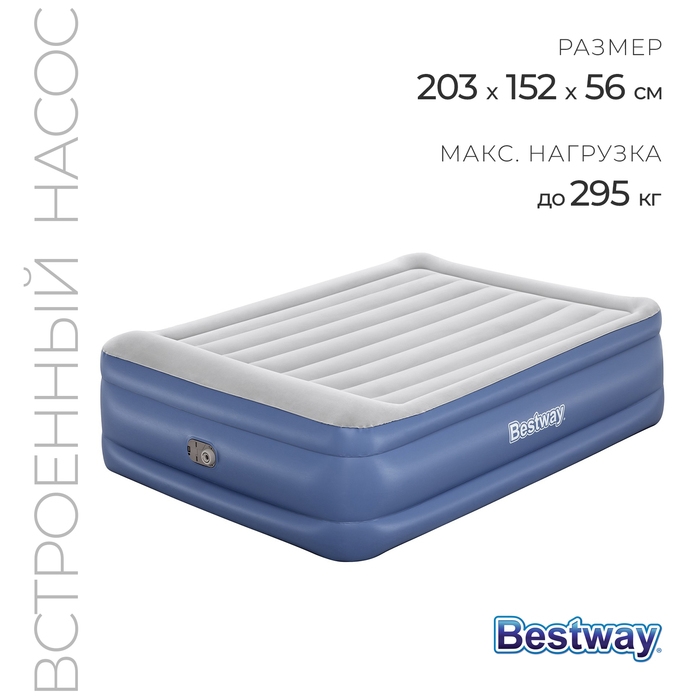 Кровать надувная Queen, 203 x 152 x 46 см, со встроенным электронасосом, 69050 Bestway