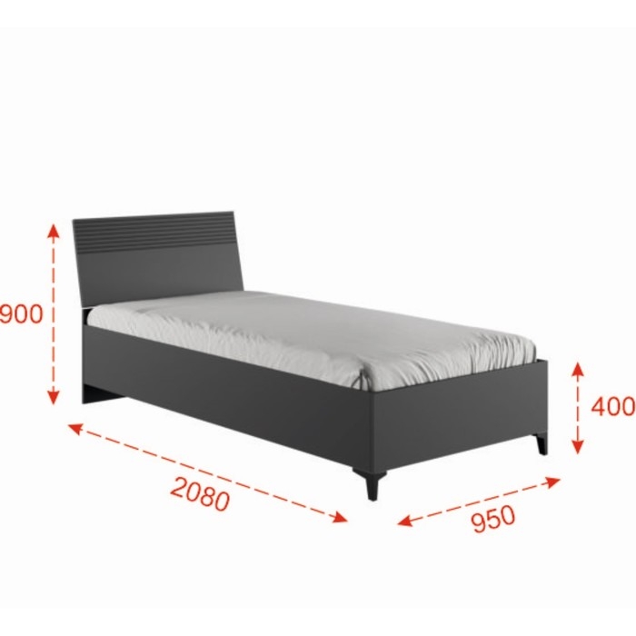 Кровать одноместная с основанием 900 Ника, 950х2080х900, Графит/Дуб/Эйфория МДФ