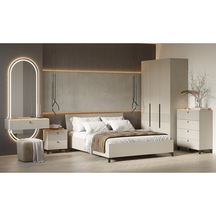 Кровать одноместная с основанием 900 Ника, 950х2080х900, Кашемир/Дуб/Бежевый МДФ