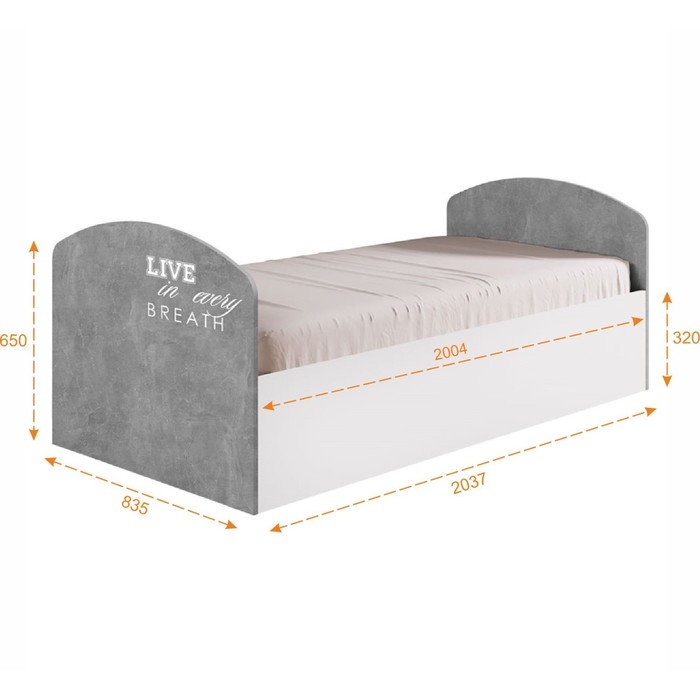 Кровать с/м 800х2000 Юниор 2, 840х2030х650, Белый/Бетон светлый
