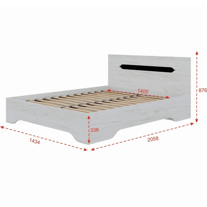 Кровать Вега 1400 с ортопед.осн, с/м 1400х2000, Крафт белый/Венге