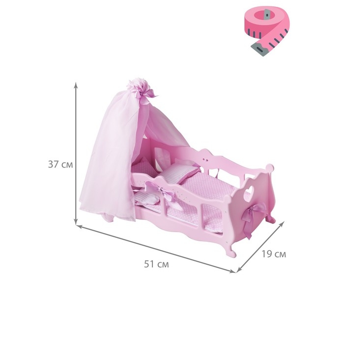 Кроватка для кукол с постельным бельем и балдахином, коллекция «Diamond princess» розовый