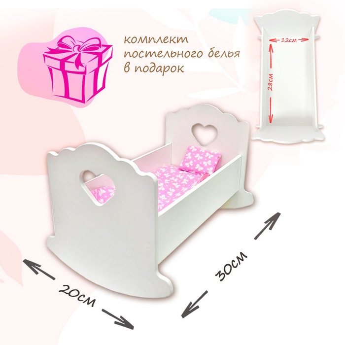 Кроватка-люлька "Сердечко" с постельным бельем, 30 см, цвет белый 00836