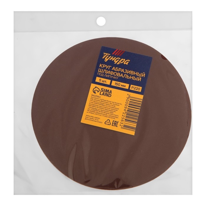 Круг абразивный шлифовальный под "липучку" ТУНДРА, 150 мм, Р220, 5 шт.