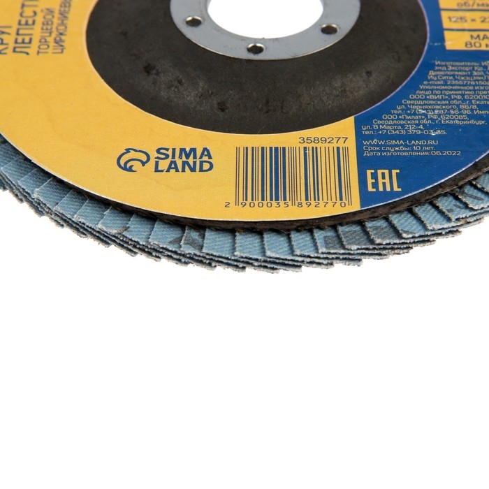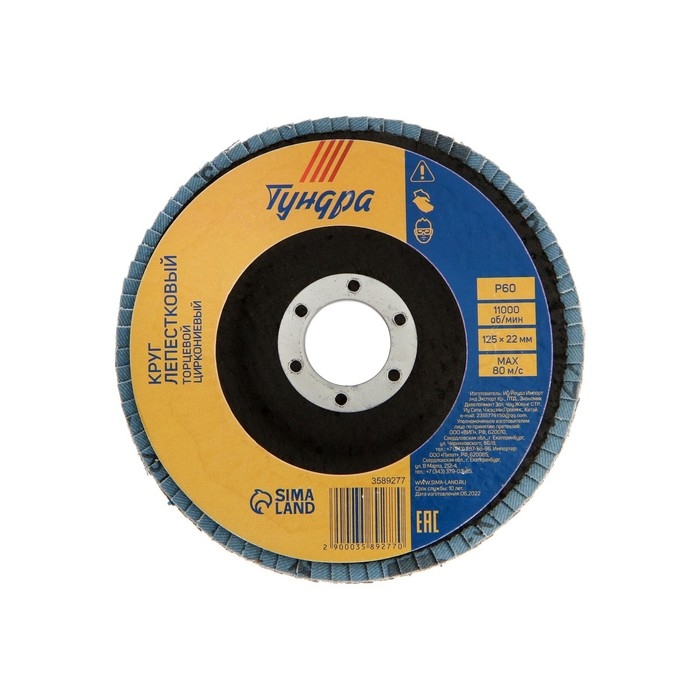 Круг лепестковый торцевой ТУНДРА, циркониевый (по нержавеющей стали), 125 х 22 мм, Р60