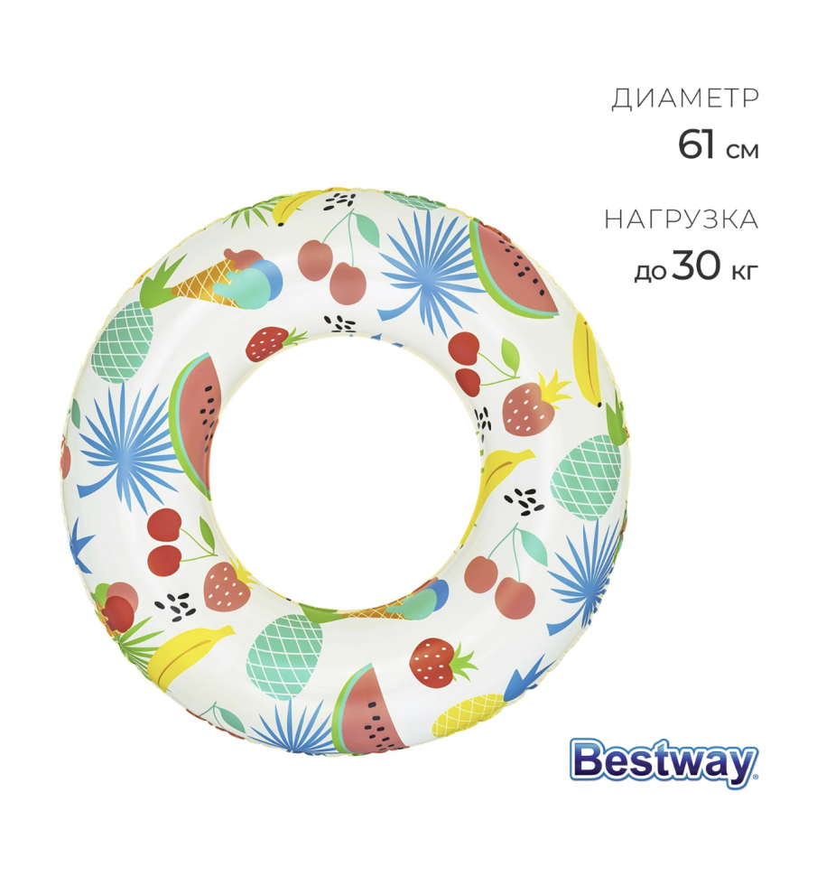 Круг надувной для плавания «Тропики», d=61 см, от 3-6 лет, цвет в ассортименте
