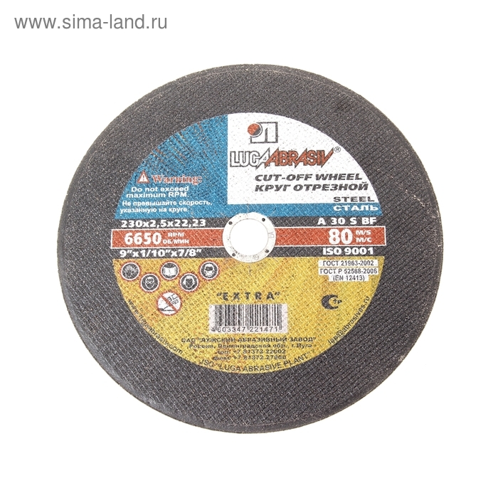 Круг отрезной по металлу "Луга" A 30 S BF 80 (14А БУ), 230 х 2.5 х 22 мм