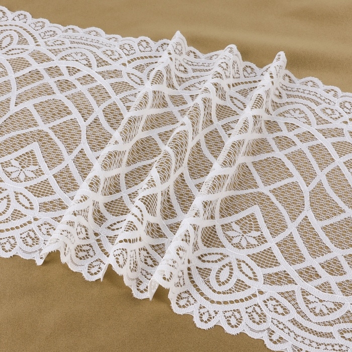 Кружевная эластичная ткань, 240 мм × 2,7 ± 0,5 м, цвет белый