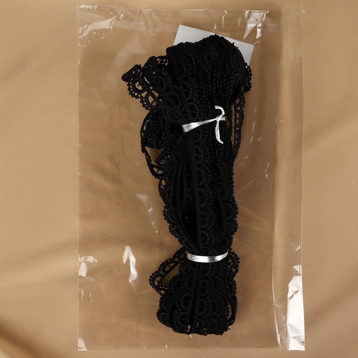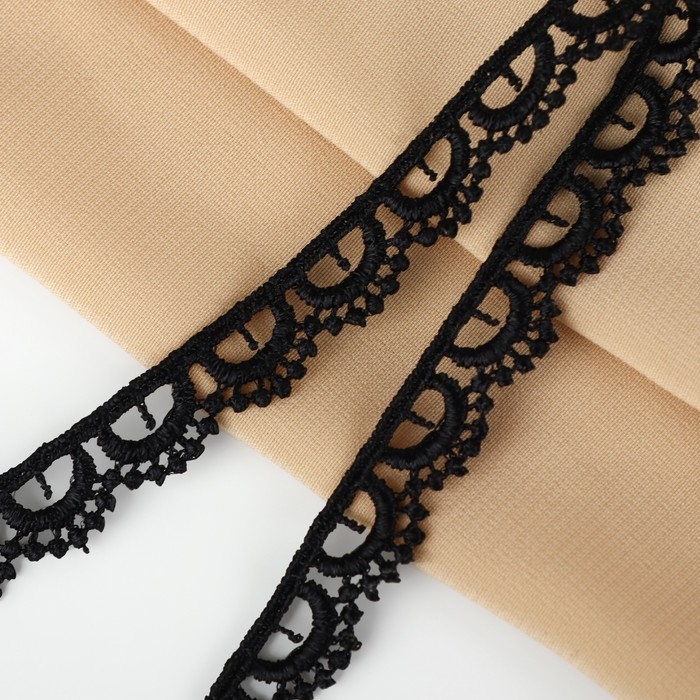 Кружево гипюровое, 13 мм × 11 ± 1 м, цвет чёрный