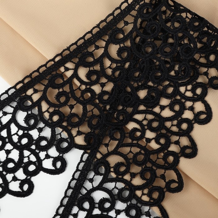 Кружево гипюровое, 78 мм × 11 ± 1 м, цвет чёрный