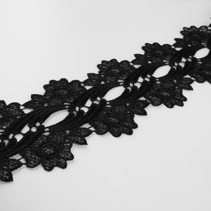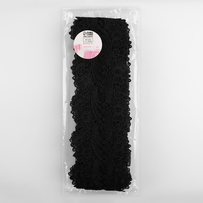 Кружево гипюровое, 80 мм × 9 ± 0,5 м, цвет чёрный