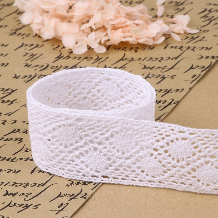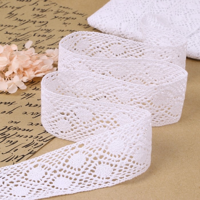 Кружево гипюровое, 45 мм × 9 ± 0,5 м, цвет белый