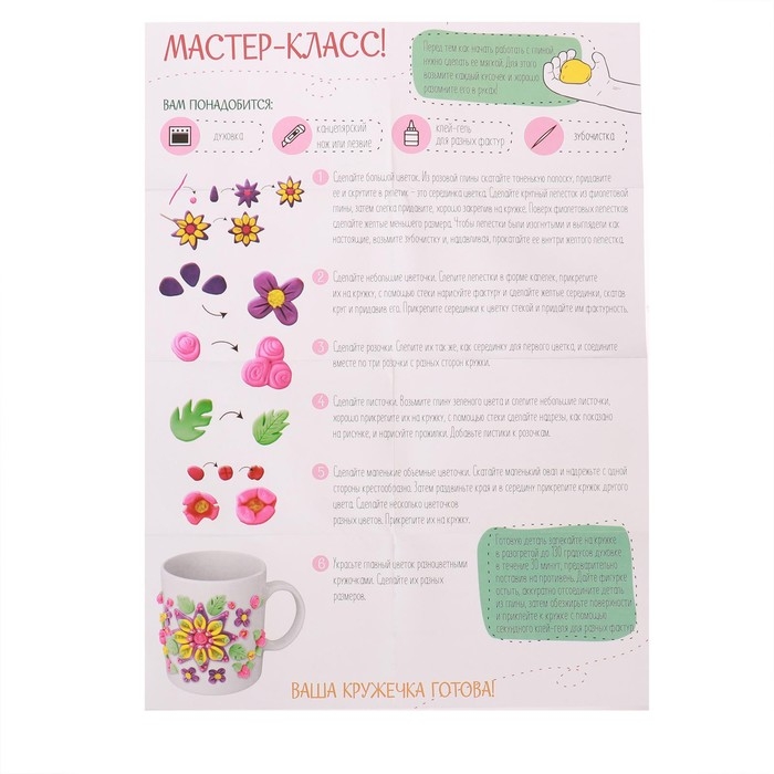 С этим набором вы сможете создать оригинальную кружку с объёмным изображением из полимерной глины.
