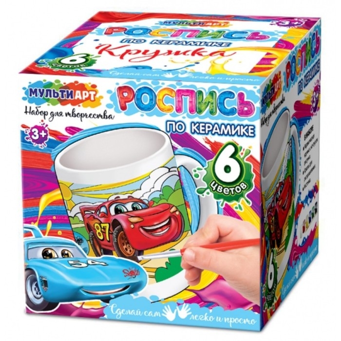 Кружка для росписи «Гоночные машинки», 6 акриловых красок, кисточка