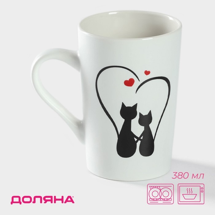 Кружка фарфоровая Доляна «Влюблённые коты», 380 мл, цвет белый