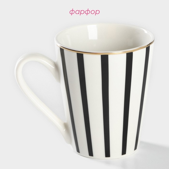 Кружка фарфоровая Доляна «Зебра», 350 мл, цвет белый