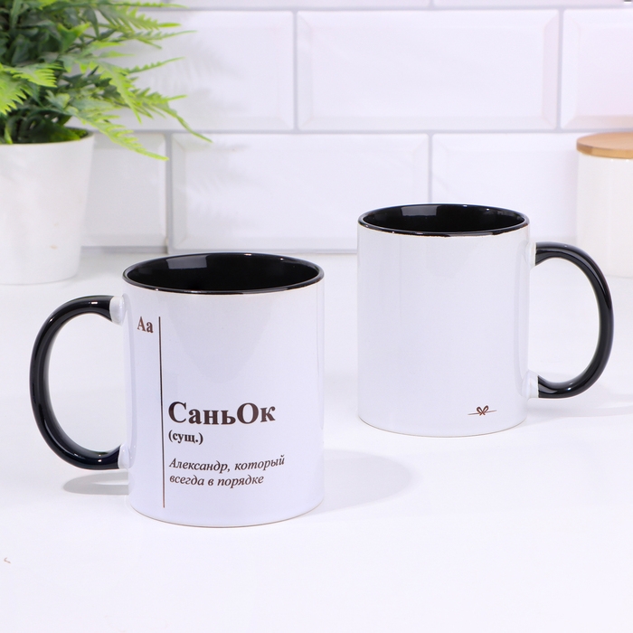 Кружка именная, сублимация "СаньОК", дно черного цвета
