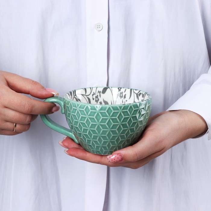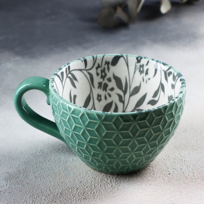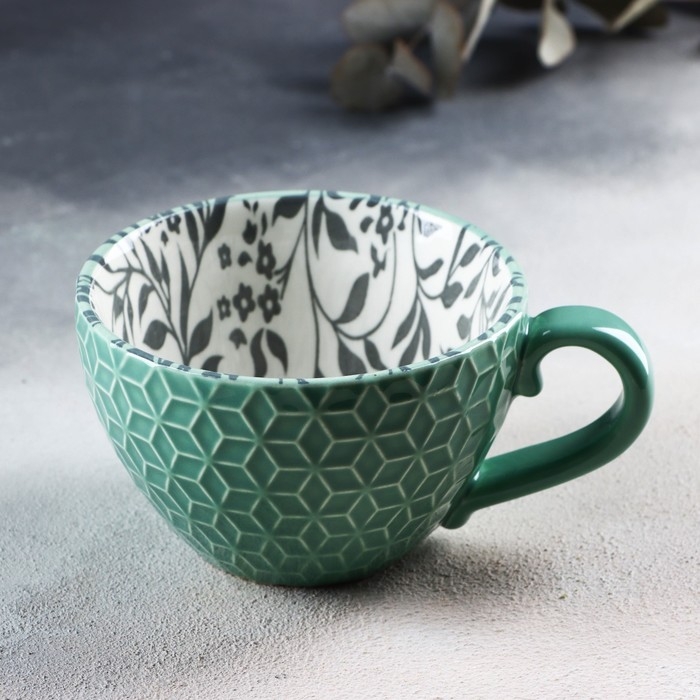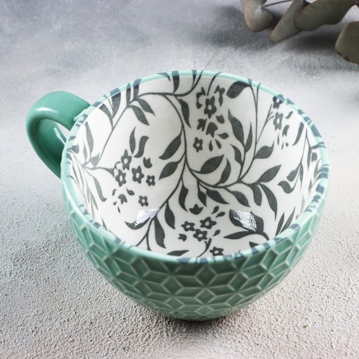 Кружка керамическая «Листья», 290 мл, цвет зелёный