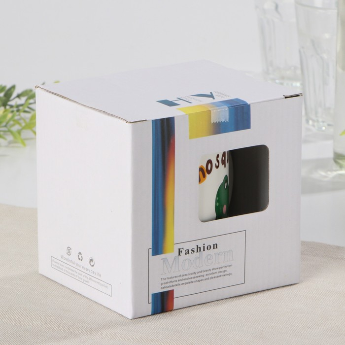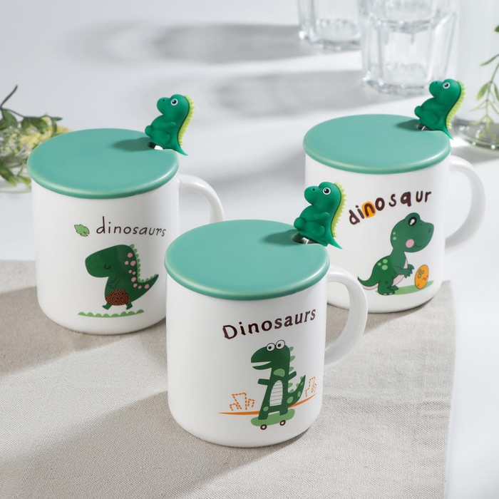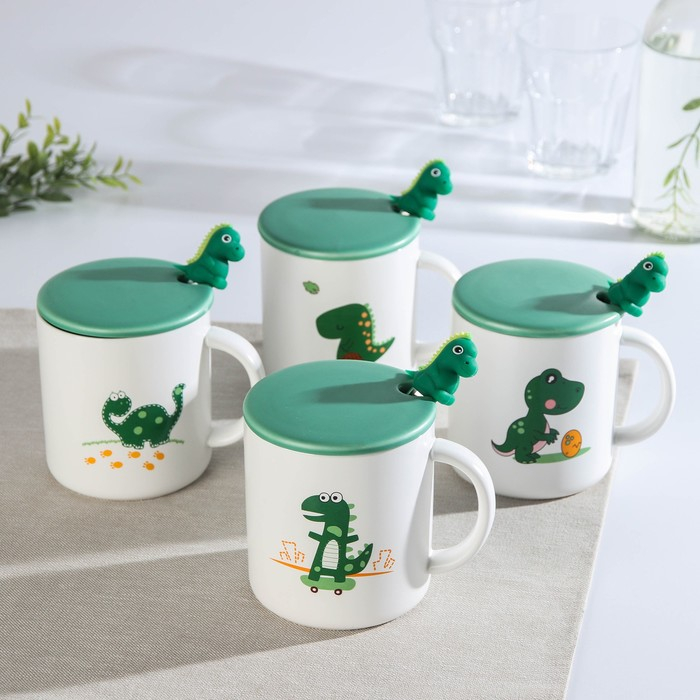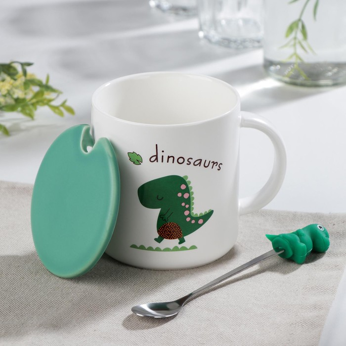 Кружка керамическая с крышкой и ложкой «Дино», 320 мл, рисунок МИКС