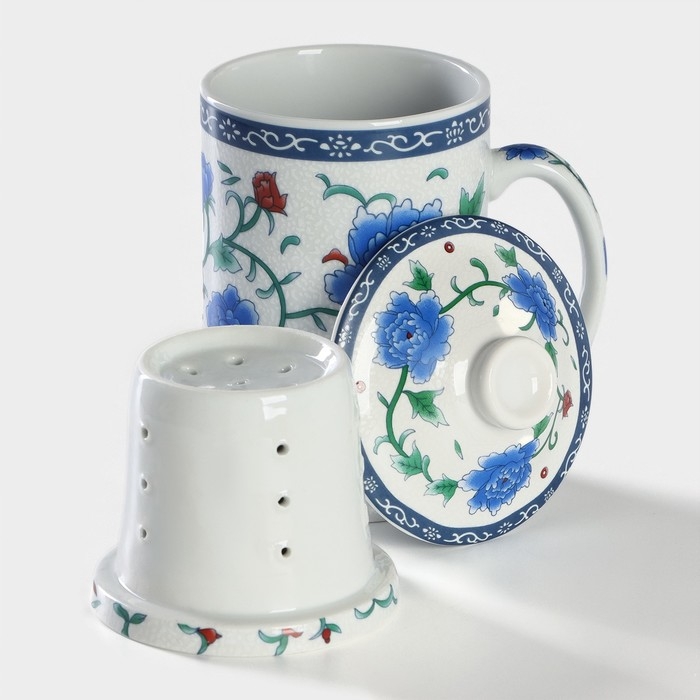 Кружка керамическая с крышкой и ситом «Цветение роз», 300 мл