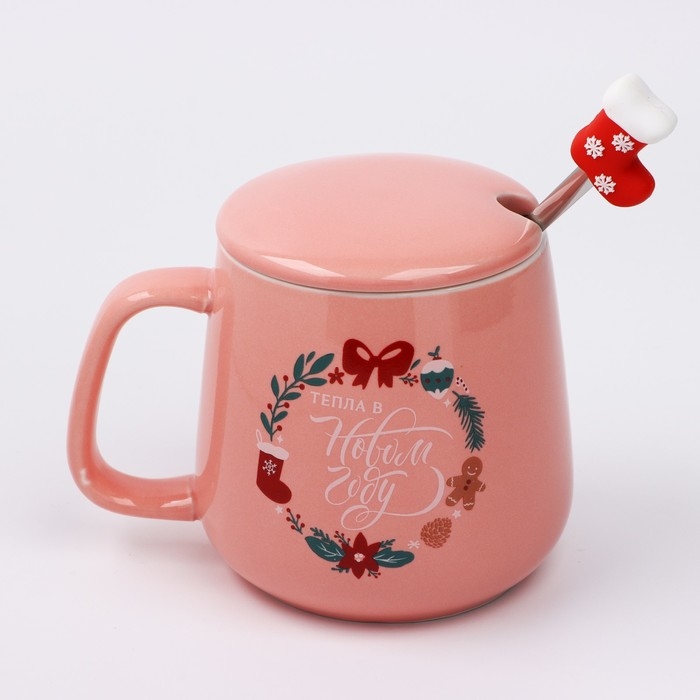 Кружка керамическая с ложкой «Уюта и тепла в Новом году», 350 мл