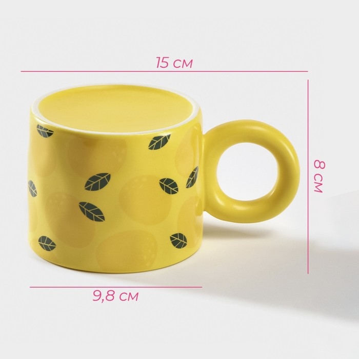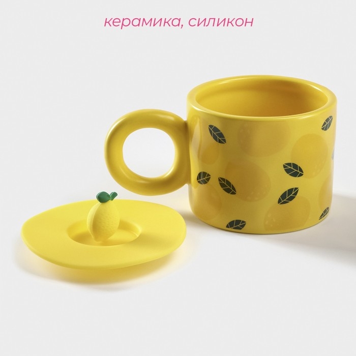 Кружка керамическая с силиконовой крышкой Доляна «Лимон», 350 мл, цвет жёлтый